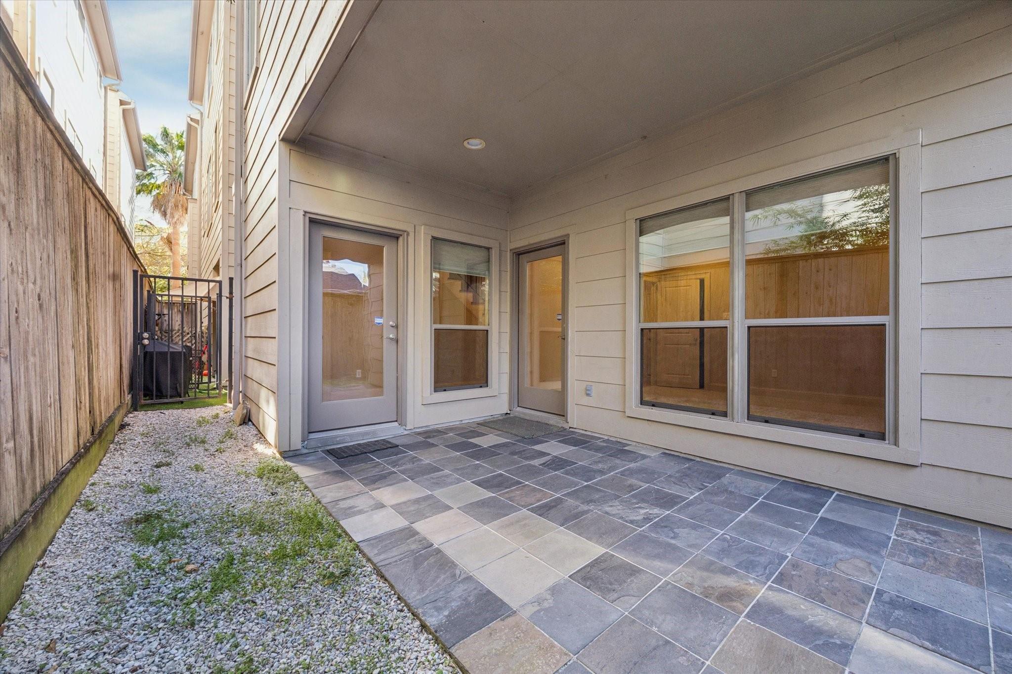 PEACEFUL RIVER OAKS LOCATION Condo on Low-Traffic Street! WALK to River Oaks Shopping & Eateries. Inside find ONLY Bamboo & Slate Floors/Crown Molding/Calming Neutral Paint! STUNNING Kitchen w/Granite+SS appliances,Tile Backsplash+Sleek SS Refrigerator+Entertaining Bar w/Beverage Fridge+Spacious Dining makes for easy Casual Entertaining! The Living Room w/Dry Bar, opens to tile-enhanced PATIO…